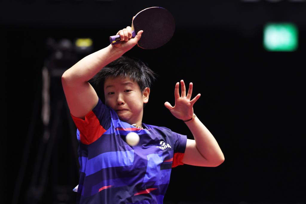 11月13日,海南隊選手林詩棟在比賽中回球。新華社記者 梁旭 攝 在女單比賽中,山東隊陳夢在和江蘇隊蒯曼的對陣中上演逆轉(zhuǎn)好戲。老將陳夢開局不利,無謂失誤較多,大比分0:2落后,她本意“不想打得太難看”,沒想到精彩逆轉(zhuǎn)。 “這就是比賽的魅力,不是你調(diào)整好了才能比賽,沒有調(diào)整好的時候怎么去應變和臨場解決也是它有意思的地方?!标悏舾袊@,“這是一場死里逃生的球。”