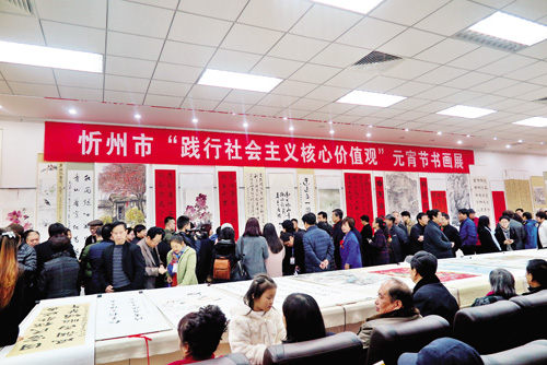 本報訊2月17日上午,由忻州市委宣傳部主辦、忻州市文聯(lián)和五臺山書畫院承辦的“忻州市‘踐行社會主義核心價值觀’元宵節(jié)書畫展”在五臺山書畫院開展。市政協(xié)主席張明成,市委常委、宣傳部長陳義青,市政協(xié)副主席賈玉文等領(lǐng)導與我市書畫愛好者共同觀展。