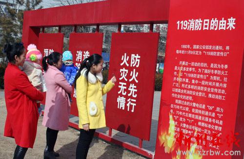 2月25日,原平市民正在119消防文化主題公園觀看、了解、學(xué)習(xí)消防安全與火災(zāi)防范知識(shí)。為進(jìn)一步推進(jìn)社會(huì)化消防宣傳工作,原平市為廣大市民打造了一個(gè)寓教于樂、主題鮮明的消防宣傳教育平臺(tái)。整個(gè)公園具有鮮明的消防主題特色,集觀賞性、教育性為一體,可使廣大市民在休閑娛樂中,了解如何防范、應(yīng)對(duì)火災(zāi)發(fā)生,以及如何進(jìn)行火場(chǎng)逃生等基本常識(shí)。(趙春曉 攝)