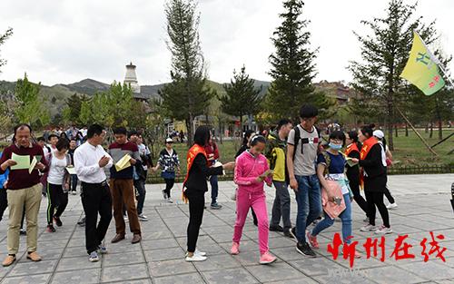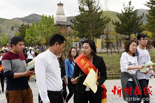 4月30日,五臺(tái)山風(fēng)景區(qū)愛心志愿者正在向游客免費(fèi)發(fā)放旅游地圖和服務(wù)指南(2)。