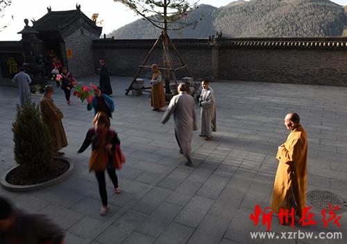 4月30日清晨7時(shí)許,山西五臺(tái)山著名寺院佛母洞僧人列隊(duì)迎接首批朝圣游客。