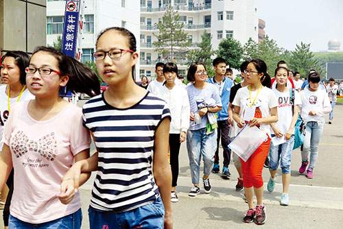 6月20日上午11時(shí)第一場(chǎng)考試結(jié)束,中考生們走出考場(chǎng)