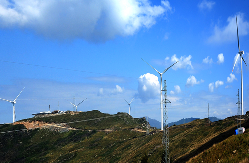 安裝在大山頂上的風力發(fā)電機組