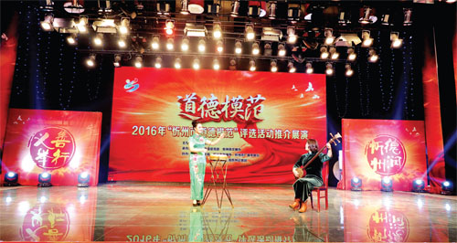 本報(bào)訊 為了集中展示我市公民思想道德建設(shè)豐碩成果,弘揚(yáng)中華民族傳統(tǒng)美德,更廣泛地動(dòng)員群眾積極參加道德建設(shè),12月15日,由市文明委主辦,市委宣傳部、市文明辦承辦,市文化局、市新聞辦、忻州日?qǐng)?bào)社、市廣播電視臺(tái)、山西經(jīng)濟(jì)日?qǐng)?bào)忻州記者站協(xié)辦的2016年“忻州市道德模范”評(píng)選活動(dòng)推介展演在忻州電視臺(tái)大演播廳舉行。