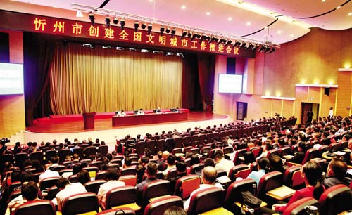 圖為忻州市創(chuàng)建全國(guó)文明城市工作推進(jìn)會(huì)議會(huì)場(chǎng)。趙菁 攝
