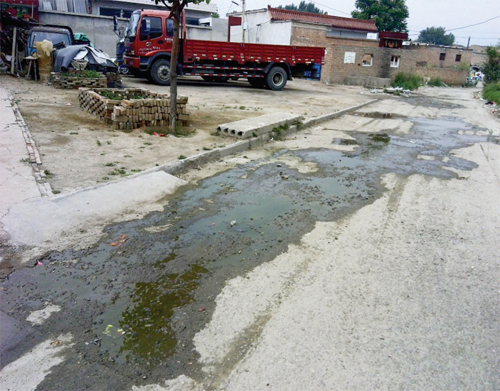 城區(qū)橋東街天宇涂料廠門口,污水橫流10 多天了,南街村有人將此修好,不到一個(gè)月,污水又開(kāi)始流出了,路面變成了綠色,氣味難聞。望相關(guān)部門督查治理。(一網(wǎng)友6月21日攝)