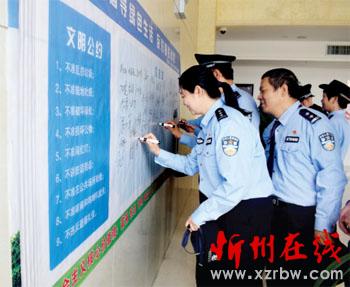 本報(bào)訊 為進(jìn)一步提升廣大民警、輔警創(chuàng)建文明城市的意識(shí),近日忻府區(qū)公安局組織開展了以“倡導(dǎo)綠色生活、反對(duì)鋪張浪費(fèi)、爭(zhēng)創(chuàng)文明城市”為主題的簽名承諾活動(dòng),局領(lǐng)導(dǎo)和全局民警、輔警參加了活動(dòng),鄭重地在簽名墻簽上姓名,紛紛表示要以此次活動(dòng)為契機(jī),從自身做起,將社會(huì)主義核心價(jià)值觀融入日常工作中,自覺(jué)踐行文明公約,積極參加志愿者活動(dòng),爭(zhēng)當(dāng)創(chuàng)建文明城市的先鋒,積極為創(chuàng)建文明城市貢獻(xiàn)力量。