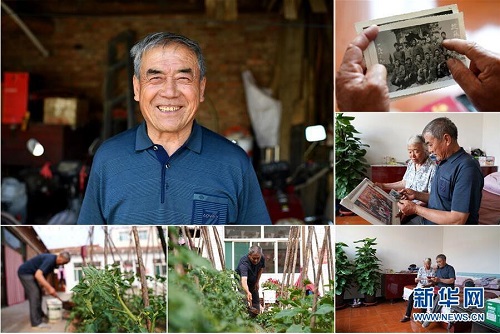 崔國平,男,1949年出生,山西省長治市武鄉(xiāng)縣監(jiān)漳村人。崔國平曾任監(jiān)漳村村支書,在職期間,帶領村民植樹造林,還修建了小學、中學,建起了橋梁及舞臺。崔國平說,村民們的生活比以前好太多了,原來住的都是土房,現在都是嶄新的磚瓦房。 左上:崔國平肖像;右上:崔國平拿著自己年輕時的照片;右中:崔國平(右)和妻子張翠英在看家人的合影;右下:崔國平(右)和妻子張翠英在翻看老照片;下中:崔國平在院子里忙碌;下左:崔國平在給自己種的菜澆水(拼版照片,6月11日攝)。 地處晉東南的山西省長治市,位于由太行山、太岳山環(huán)繞而成的上黨盆地中。在群山中、崖壁上,許多村莊自然條件惡劣,基礎設施落后,脫貧致富是大山深處人們的迫切心愿。 近年來,一場場脫貧攻堅戰(zhàn),在一個個深山村打響。政府全力探索脫貧路徑的同時,山區(qū)百姓因地制宜,靠自己的雙手和智慧走上致富路,交出了一份扎實的脫貧答卷。 記者在太行山、太岳山一路尋訪,記錄下多位70歲老人的生活。這些共和國的同齡人,親歷了山鄉(xiāng)的巨變,見證著長治山區(qū)脫貧攻堅偉大工程的一步步推進。 新華社記者 詹彥 攝