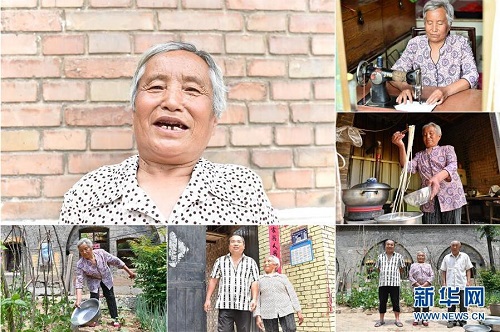 鄭引蘭,女,1949年出生,山西省長治市潞城區(qū)西靳村人,2015年因家人患病而被納入建檔立卡貧困戶?,F(xiàn)在,多項扶貧政策讓全家人的生活有了明顯改善,當(dāng)?shù)卣畮椭7扛脑斓母G洞也即將完工。 左上:鄭引蘭肖像;右上:鄭引蘭在使用縫紉機;右中:鄭引蘭在廚房盛飯;右下:鄭引蘭(中)一家人合影;下中:鄭引蘭和兒子走出家門;下左:鄭引蘭在院子里給植物澆水(拼版照片,6月12日攝)。 地處晉東南的山西省長治市,位于由太行山、太岳山環(huán)繞而成的上黨盆地中。在群山中、崖壁上,許多村莊自然條件惡劣,基礎(chǔ)設(shè)施落后,脫貧致富是大山深處人們的迫切心愿。 近年來,一場場脫貧攻堅戰(zhàn),在一個個深山村打響。政府全力探索脫貧路徑的同時,山區(qū)百姓因地制宜,靠自己的雙手和智慧走上致富路,交出了一份扎實的脫貧答卷。 記者在太行山、太岳山一路尋訪,記錄下多位70歲老人的生活。這些共和國的同齡人,親歷了山鄉(xiāng)的巨變,見證著長治山區(qū)脫貧攻堅偉大工程的一步步推進。 新華社記者 曹陽 攝