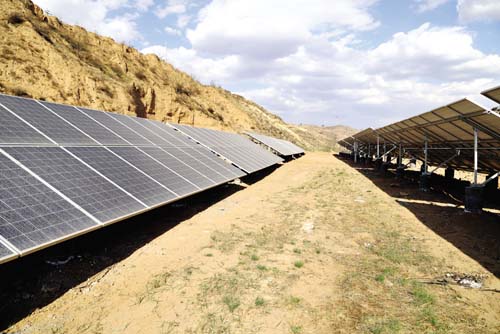 靜樂縣光照資源充足,荒山荒坡廣闊,建設光伏電站具有得天獨厚的優(yōu)勢。近年來,該縣通過在荒山荒坡上建設光伏電站推進脫貧攻堅,帶動幫助貧困人口增收。圖為靜樂縣豐潤鎮(zhèn)李家會村光伏電站一角。(閆曉梅 攝)
