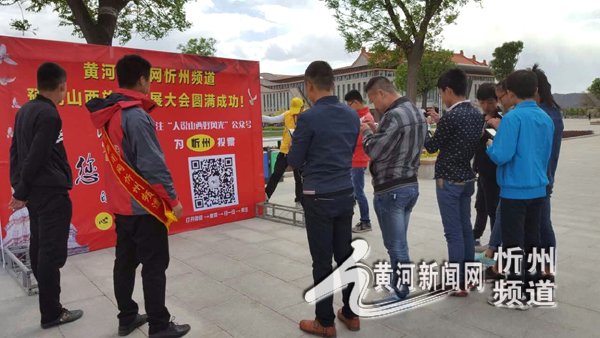 5月2日 ,在河曲縣,黃河岸邊西口古渡廣場,黃河新聞網采編人員攜河曲縣愛華公益志愿者、青年志愿者和各界愛心人士及商家兩百于人開展了關注“人說山西好風光”微信公眾號,參與“忻州——我們共同的心靈之舟”投票宣傳活動。