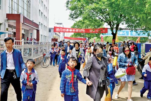 下學時段長征路小學門前秩序井然