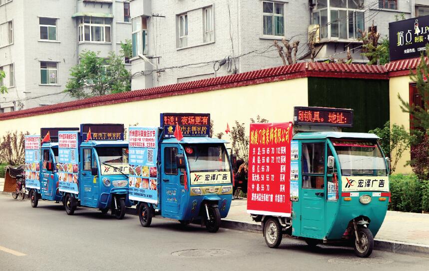 目前,我市正在創(chuàng)建全國文明城市,希望有關(guān)部門能夠同步跟進(jìn),下大力、出重拳,治理突出問題,切實改善城市面貌,不斷提高老百姓的幸福感和滿意度,為我市創(chuàng)建全國文明城市添磚加瓦。圖為停在非機(jī)動車道上的電動三輪廣告車。張志遠(yuǎn) 攝