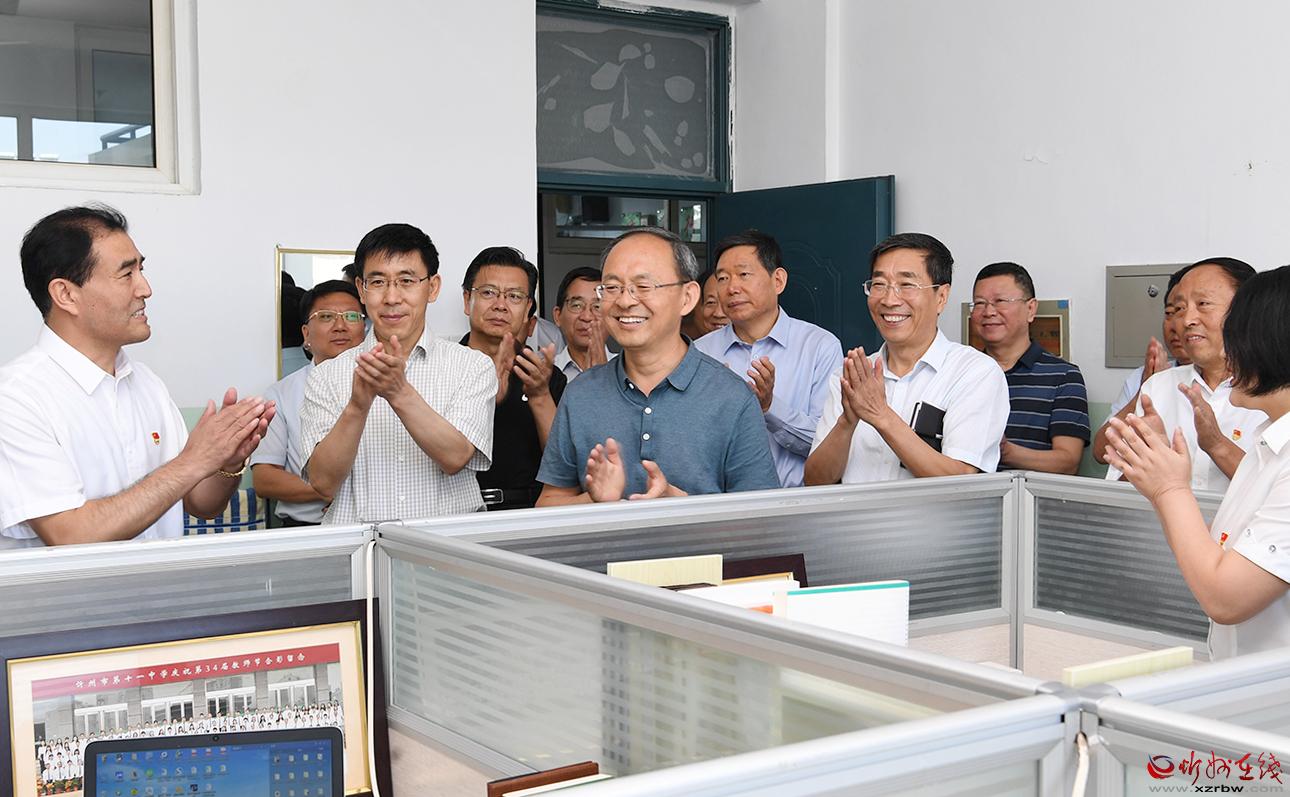 每到一處,朱曉東都向教師們致以節(jié)日問(wèn)候。長(zhǎng)征小學(xué)西校區(qū)是一所高標(biāo)準(zhǔn)規(guī)劃、高水平建設(shè)的新建學(xué)校,今年秋季學(xué)期投入使用。朱曉東察看電子圖書(shū)閱覽等教學(xué)新設(shè)施,了解學(xué)校開(kāi)設(shè)的書(shū)法、歌唱、手工、足球、乒乓球、跆拳道、機(jī)器人組裝等特色教育課程,隨機(jī)檢查學(xué)生飲用水機(jī)具,向從基層選拔聘用的優(yōu)秀教師代表贈(zèng)送書(shū)籍,勉勵(lì)大家珍惜崗位,肩負(fù)起時(shí)代賦予的重任,全心全意培養(yǎng)好人才。具有40多年歷史的忻州六中辦學(xué)底蘊(yùn)厚重,近年來(lái)與時(shí)俱進(jìn)提升教學(xué)能力。朱曉東實(shí)地了解學(xué)校發(fā)展情況后,一一為教師代表獻(xiàn)上鮮花,感謝大家辛勤付出,希望學(xué)校越辦越好,讓孩子們?cè)趯W(xué)校有更多收獲。忻州高級(jí)中學(xué)教學(xué)設(shè)施先進(jìn),教師隊(duì)伍素質(zhì)高、經(jīng)驗(yàn)豐富,今年學(xué)校畢業(yè)班高考再次取得好成績(jī)。朱曉東詳細(xì)了解學(xué)校歷史和往屆學(xué)生成就,鼓勵(lì)教師們放長(zhǎng)眼光,對(duì)照更高標(biāo)準(zhǔn)繼續(xù)努力,為忻州增光添彩。