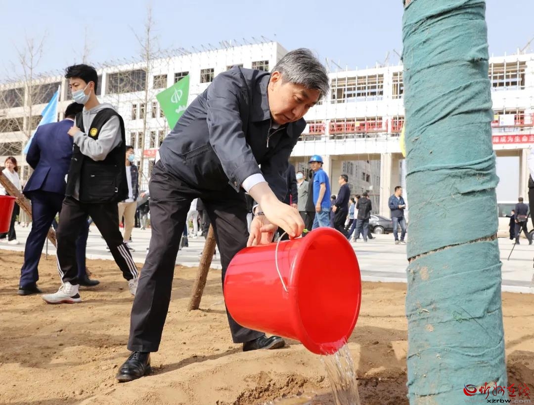 誓師大會后,與會人員共同為師院新校區(qū)植樹綠化。