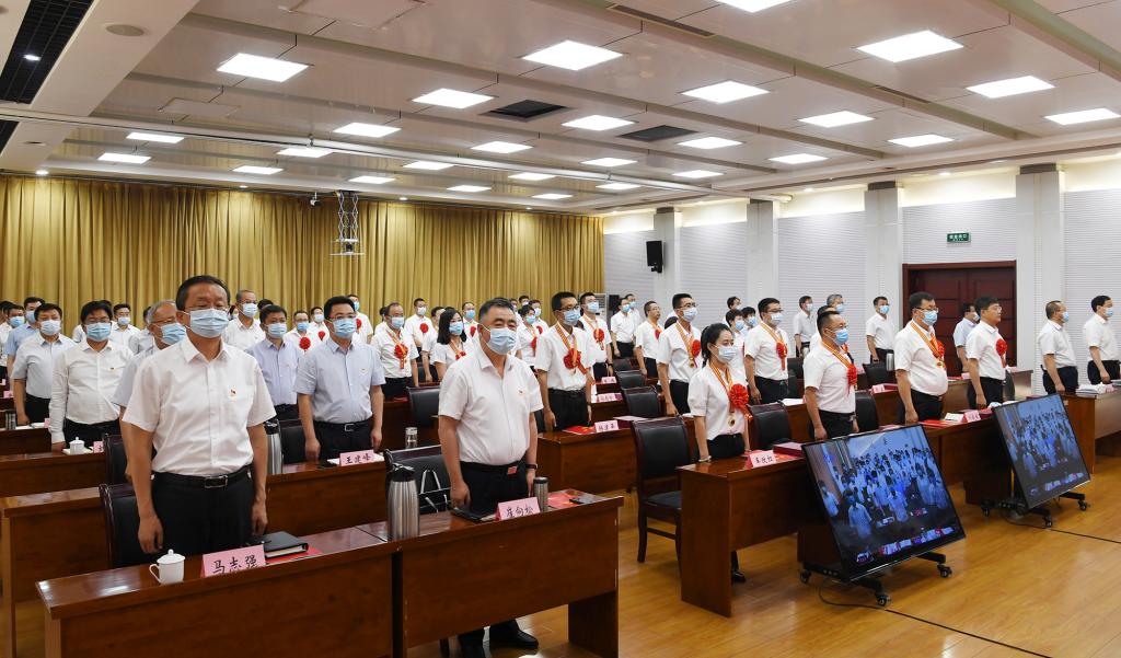 集體奏(唱)國歌。劉紀森 攝 鄭連生強調(diào),在新時代新征程建立新業(yè)績,必須凝神鑄魂、強化引領,著力打造文化強市。要不斷突出先進文化引領,聚民心、育新人、興文化、展形象,大力傳承弘揚紅色精神,樹牢“來了忻州就是忻州人,來過忻州就是忻州人,關心忻州就是忻州人”的新忻州人理念,著力打造開放、包容、多元、創(chuàng)新、公開、競爭、秩序的軟實力,努力做忻州創(chuàng)新文化建設的倡導者和實踐者。要始終秉持艱苦奮斗作風,敢于涉險灘、敢啃硬骨頭,堅持攻堅克難、勇攀高峰,堅韌進取、不懈努力。要努力鑄就忻州時代精神,打造開放、包容、法治、活力、創(chuàng)新的城市新形象,不斷凝聚人心、培養(yǎng)人才,真正讓敢為人先、群策群力、滴水穿石、創(chuàng)新發(fā)展成為忻州所有干部群眾的共同追求,推動形成人人踐行核心價值觀、爭當時代新人、創(chuàng)新創(chuàng)造前進的生動局面,真正將忻州打造成先進文化建設的強市,不斷引領高質(zhì)量轉(zhuǎn)型發(fā)展。 鄭連生強調(diào),在新時代新征程建立新業(yè)績,必須以更大的勇氣積極應對、主動化解各類風險隱患,堅決守牢安全穩(wěn)定的底線。全市上下要堅決貫徹習近平總書記關于安全生產(chǎn)的重要指示要求,全面落實全省進一步加強安全生產(chǎn)工作部署會議精神,深刻汲取代縣“6·10”鐵礦透水事故教訓,真正把“543”工作機制落深、落細、落到位,迅速形成嚴管嚴治的高壓態(tài)勢,真正把責任傳導到企業(yè)、傳導到一線每個工作崗位,落實到每個生產(chǎn)工藝、生產(chǎn)環(huán)節(jié),迅速扭轉(zhuǎn)被動局面,有效推動安全生產(chǎn)形勢穩(wěn)定好轉(zhuǎn)。要守牢社會穩(wěn)定底線,努力營造穩(wěn)定的社會環(huán)境。要防范化解重大風險,全面加強地方政府債務、國有企業(yè)債務、地方金融風險防范。