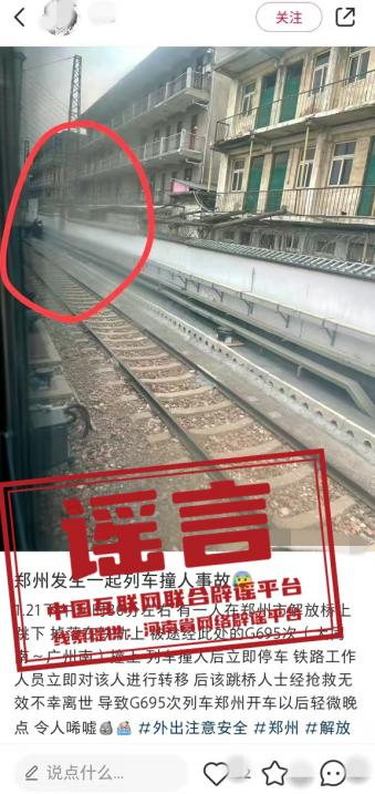 謠言:河南鄭州發(fā)生列車撞人事故?