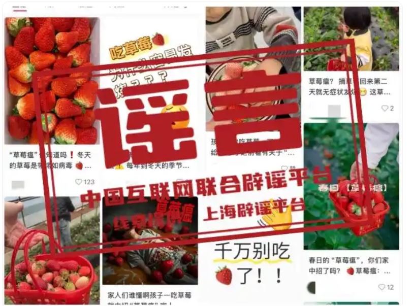 真相:近日,部分社交平臺(tái)出現(xiàn)大量有關(guān)“草莓瘟”的“善意提醒”,稱(chēng)“孩子吃了草莓就會(huì)發(fā)燒咳嗽、上吐下瀉”“草莓上農(nóng)藥殘留量大”“草莓帶有諾如病毒”“大棚里種出來(lái)的草莓是反季水果”,建議大家近期不要食用草莓。經(jīng)核查,這些說(shuō)法都違背了農(nóng)業(yè)常識(shí),可能?chē)?yán)重誤導(dǎo)公眾。