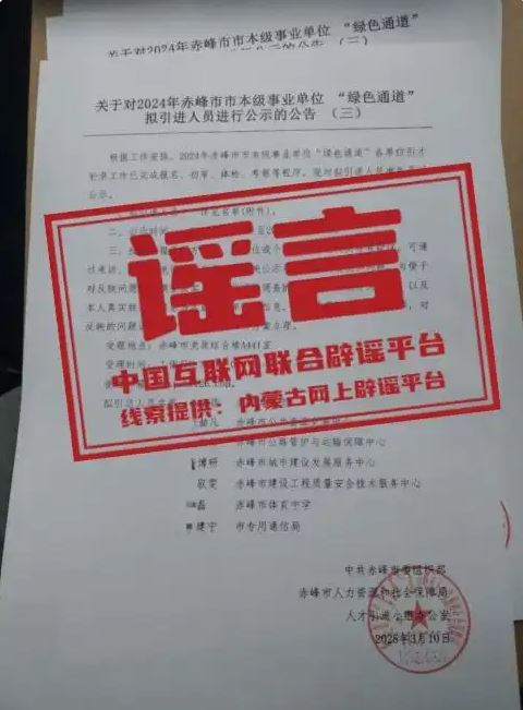 辟謠:內(nèi)蒙古赤峰市人力資源和社會(huì)保障局發(fā)布嚴(yán)正聲明