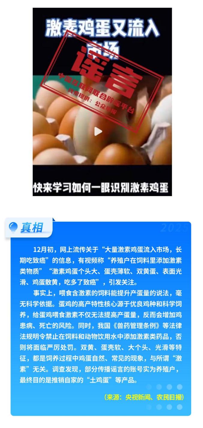 部分網民蹭炒民生話題制造焦慮。秋冬季流感高發(fā),期間流傳“奧司他韋、瑪巴洛沙韋出現耐藥”等不實傳言,干擾患者合理用藥;“‘液體口罩’一噴就能防流感”的說法,更是夸大宣傳,其所謂“防護效果”未經臨床驗證,設計與真實人體情況相去甚遠。而“激素蛋大量流入市場”等說法毫無科學依據,其背后是不良商家的推銷策略,加劇了公眾對食品安全的擔憂。