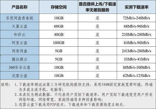 網(wǎng)盤(pán)下載速率測(cè)試情況(普通用戶)