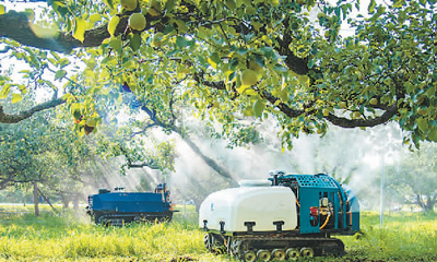 安徽省宿州市碭山縣近年大力推廣“人工智能+數(shù)字果園”模式,推動碭山酥梨產(chǎn)業(yè)智能化、數(shù)字化轉(zhuǎn)型,為鄉(xiāng)村振興和數(shù)字鄉(xiāng)村建設(shè)夯實(shí)基礎(chǔ)。圖為碭山縣一家果園內(nèi),果園機(jī)器人在噴施生物農(nóng)藥。崔 猛攝(人民視覺)