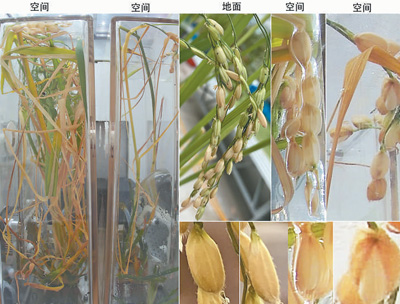 水稻空間開(kāi)花時(shí)間比地面略有提前,但是灌漿時(shí)間延長(zhǎng)了10多天,大部分穎殼不能關(guān)閉。開(kāi)花時(shí)間和穎殼閉合均是水稻的重要農(nóng)藝性狀,二者在保障植物充分生殖生長(zhǎng)和獲得高產(chǎn)優(yōu)質(zhì)種子方面都有重要作用,此過(guò)程受到基因表達(dá)的調(diào)控,后續(xù)將利用返回樣品進(jìn)一步分析。