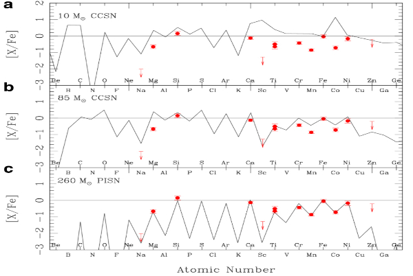 此項研究中,團(tuán)隊結(jié)合郭守敬望遠(yuǎn)鏡低分辨率光譜和日本昴星團(tuán)望遠(yuǎn)鏡高分辨率光譜數(shù)據(jù)發(fā)現(xiàn)了一顆化學(xué)豐度極為特殊的極貧金屬星(LAMOST J1010+2358),這顆恒星的化學(xué)豐度特征無法通過核坍縮超新星理論模型解釋,卻與260倍太陽質(zhì)量的對不穩(wěn)定超新星理論計算結(jié)果高度吻合。