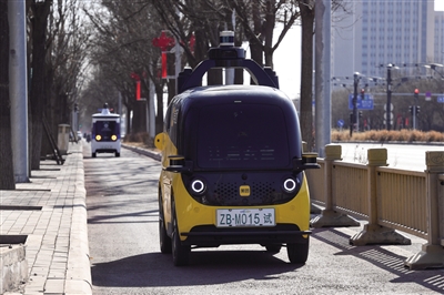 圖為兩輛無人車正在北京經(jīng)濟(jì)技術(shù)開發(fā)區(qū)街頭行駛。 新華社記者 鞠煥宗 攝