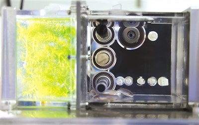 在問天艙生命生態(tài)實(shí)驗(yàn)柜小型受控生命生態(tài)實(shí)驗(yàn)?zāi)K中,魚類、植物和微生物協(xié)同參與——藻類光合作用產(chǎn)生的氧氣供斑馬魚呼吸,魚呼出的二氧化碳供藻類進(jìn)行光合作用,進(jìn)食產(chǎn)生的糞便則提供了藻類生長的養(yǎng)料。在飲食方面,科學(xué)家專門設(shè)計了魚食,用注射器推進(jìn)“魚缸”。