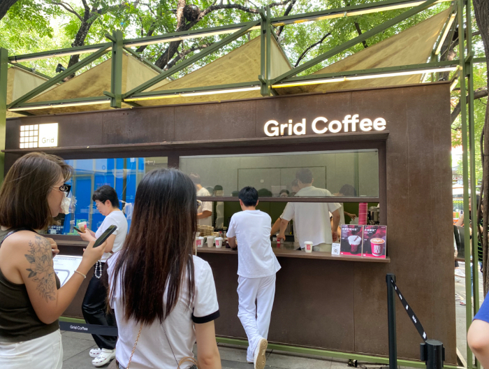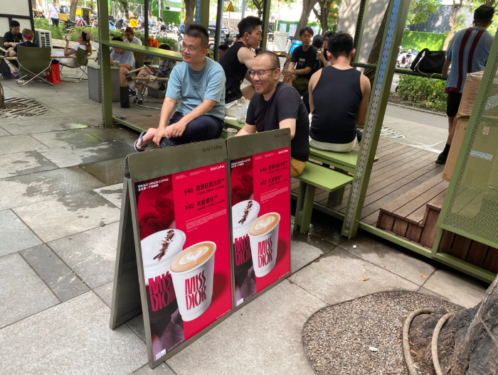 Grid Coffee與迪奧聯(lián)名咖啡吸引消費(fèi)者排隊購買。