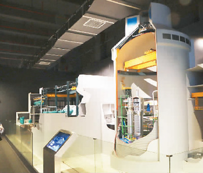 從模型結(jié)構(gòu)可以看到,“國和一號”外層被厚厚的混凝土層包裹?!斑@是屏蔽廠房,厚1.1米,兩層鋼板內(nèi)部填充高性能、高強(qiáng)度的混凝土,可抵御臺風(fēng)、海嘯來襲或是飛機(jī)撞擊?!眲⑿吕榻B。
