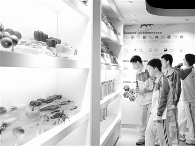圖為觀眾在農(nóng)業(yè)成果及智慧農(nóng)業(yè)展廳內(nèi)觀看農(nóng)業(yè)新品種。洪星攝
