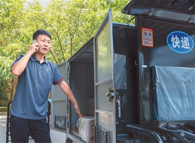 700專用號碼啟用后可方便消費者識別、提升快遞員、外賣員配送效率。在網(wǎng)約車行業(yè)推廣后,700專用號碼還將助力乘客精準識別駕駛員來電,讓駕駛員接單更順暢,減少停車繞行。圖為6月29日,陜西省西安市的一位快遞員正用手機聯(lián)系顧客,準備派送快件。新華社記者 毛思倩攝