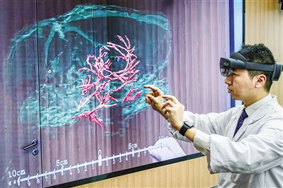 圖為科研人員展示通過混合現(xiàn)實技術(shù),微米級呈現(xiàn)腦機(jī)接口裝置與大鼠大腦主要血管和腦組織的空間位置關(guān)系。新華社記者 肖藝九 攝