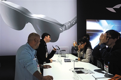 圖為2026美國(guó)拉斯維加斯消費(fèi)電子展上,參觀者在體驗(yàn)智能眼鏡。 新華社發(fā)(曾慧攝)