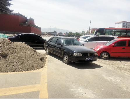 本報訊 6月2日,記者在北城門樓西北角看到,車輛停放混亂無序,有的甚至停放在通行的馬路上。而馬路中央堆放著一堆施工用沙,整個環(huán)境看上去不和諧。