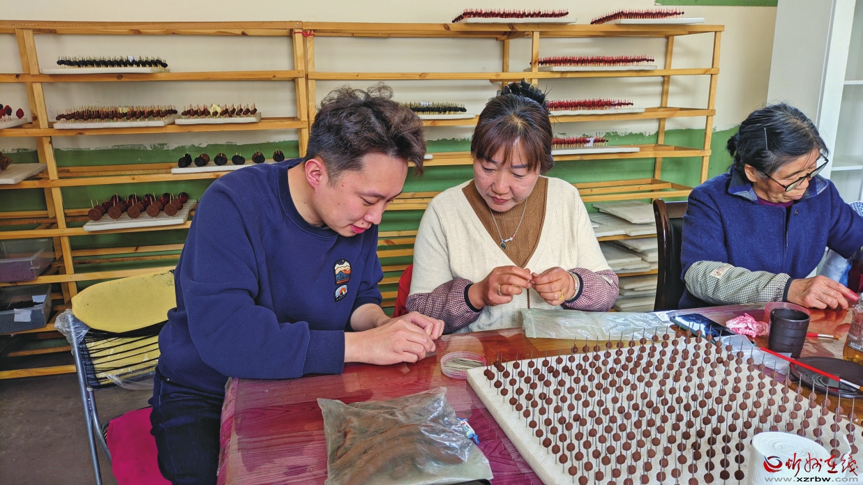 合作社成立初始,村民們對操作工序不熟練。于是杜晨陽干脆在合作社里開設(shè)了“小課堂”,邊教邊做,很快村里就多了一批“能工巧匠”。