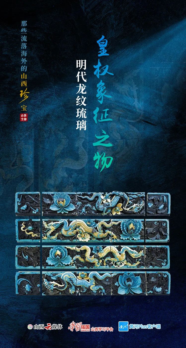 龍是中國(guó)古代吉祥如意和皇權(quán)的象征。山西在明代時(shí)期對(duì)琉璃技術(shù)的制作非常成熟,各種圖案的裝飾琉璃部件十分普遍。這一組二十塊的釉面瓷磚,打造于15至16世紀(jì)的山西,最初應(yīng)該來自兩個(gè)不同的寺廟建筑。