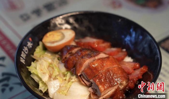 店內(nèi)靠街邊一角,港式燒臘明檔會出品咸蛋叉燒、燒鵝等港式產(chǎn)品。港式燒臘加長沙米粉的組合,不僅讓許多長沙人贊不絕口,也吸引眾多在湘生活的港人聞香而來。