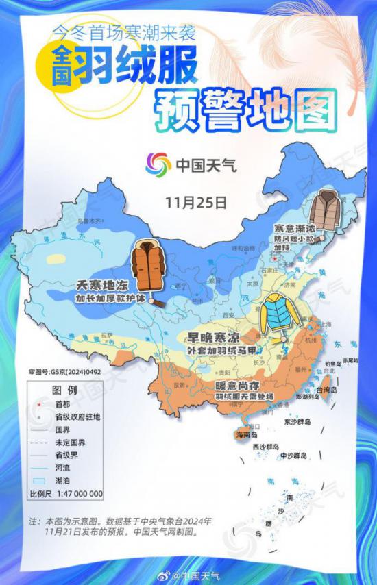 從南到北都要穿:全國羽絨服預(yù)警地圖出爐