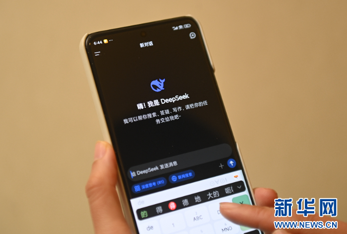 用戶在DeepSeek手機客戶端上提問。新華社記者 黃宗治 攝