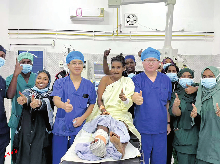 在麻醉的作用下,患者全程清醒、無痛。骨科醫(yī)生楊青則憑借熟練的手術(shù)操作,成功為她實(shí)施了創(chuàng)面皮膚軟組織清創(chuàng)術(shù)?;颊咝g(shù)后恢復(fù)良好,對(duì)醫(yī)療隊(duì)的精湛醫(yī)術(shù)和無私奉獻(xiàn)表示由衷的感謝。她表示,從未想過在吉布提能夠接受到如此卓越非凡的醫(yī)療服務(wù),感謝中國(guó)醫(yī)療隊(duì)的到來,為自己帶來了希望。