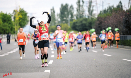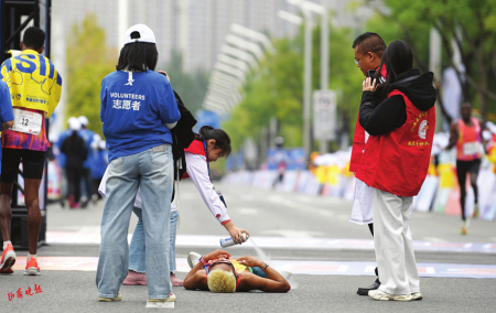 賽道內(nèi)外,另一群身影同樣令人動容。志愿者們沿途遞水補(bǔ)給、指引方向,沙啞的嗓音里滿是熱忱;醫(yī)護(hù)人員隨身攜帶急救設(shè)備,目光緊盯著每一位跑者,隨時準(zhǔn)備伸出援手。他們的全程守護(hù),如同秋日里的暖陽,成為賽道上最溫暖的風(fēng)景。