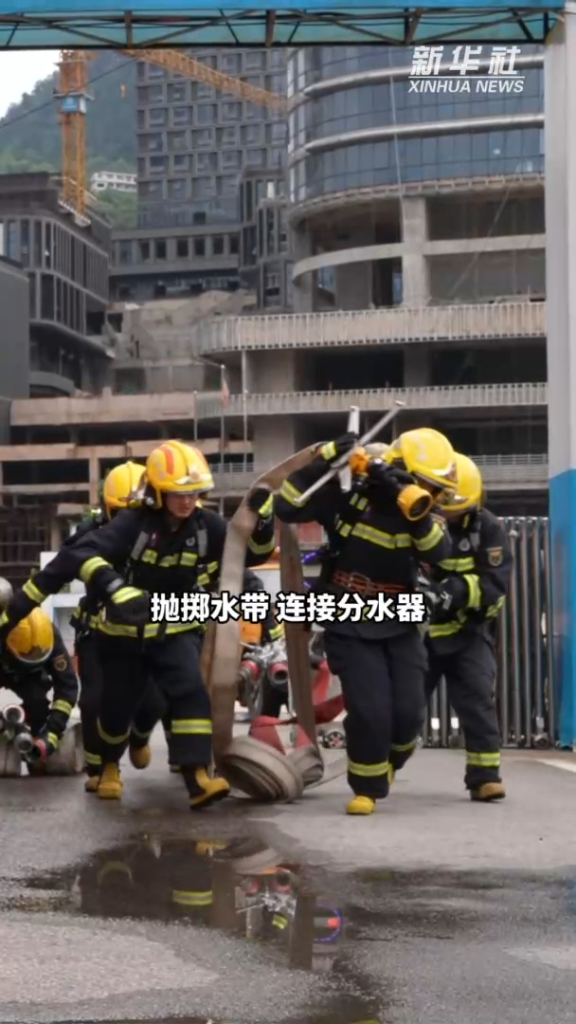 整理內(nèi)務(wù)、體能訓(xùn)練、專業(yè)訓(xùn)練都是日常要做的,穿著40多斤重的裝備,身手十分的嫻熟。拋擲水帶、連接分水器、架設(shè)消防梯、水槍連接水帶這些動(dòng)作行云流水,絲毫不拖沓。