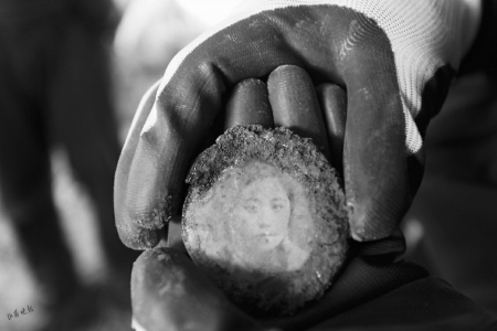 事情發(fā)生在4月10日,縱覽新聞記者李見第一時間趕到現(xiàn)場,對烈士尋親進(jìn)行了報道。挖掘現(xiàn)場,烈士保持著雙手交叉放在胸前的姿勢,雙手緊握著一枚小圓鏡,鏡子中間夾著一張端莊秀麗的女子黑白照片。雖然鏡子周邊沾滿了泥土,雖然被烈士緊握82年,但照片中的女子一塵不染、清晰可見。