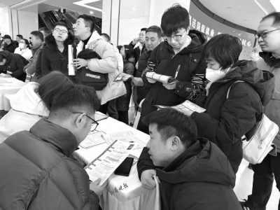 2月5日,正月初八,太原市新春首場(chǎng)大型招聘會(huì)在山西太原人力資源服務(wù)產(chǎn)業(yè)園拉開帷幕。上午9時(shí)許,現(xiàn)場(chǎng)的求職者便已經(jīng)比肩接踵,全力奔赴各自心儀的企業(yè)展位?!皪徫欢?,求職者也多,感覺比過年時(shí)逛廟會(huì)還熱鬧?!鼻舐氄呲w先生笑著說。