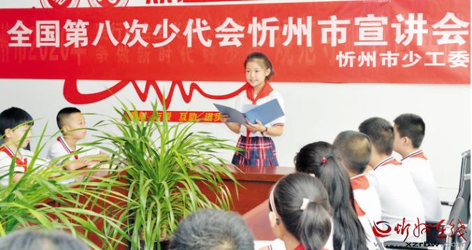 8月4日,由團(tuán)市委、市少工委主辦的“全國(guó)第八次少代會(huì)忻州市宣講會(huì)”在忻州好人館舉行,全國(guó)少代會(huì)代表、七一路小學(xué)少先隊(duì)員劉子瑄帶領(lǐng)少先隊(duì)員們學(xué)習(xí)了第八次全國(guó)少代會(huì)精神,并給大家分享了參加少代會(huì)的心得。 張存良 攝