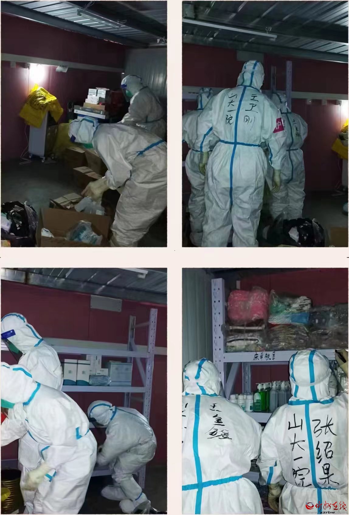 志愿者以畫代言表達心聲 院感防控是方艙醫(yī)院突出的難點。臨時黨委嚴格落實全過程閉環(huán)管理,嚴格院感防控操作規(guī)程,嚴把專車轉運、垃圾處理、消毒消殺關鍵環(huán)節(jié),確保院感防控工作安全有序進行。聯(lián)合院感部每日督導,形成問題清單并及時督促整改,配備專職保潔和消殺人員,做好環(huán)境衛(wèi)生和保潔消殺。對所產生的醫(yī)療廢物、醫(yī)療垃圾,進行雙黃袋分層鵝頸式包扎,由市安康醫(yī)廢公司專業(yè)清運處置,實行日產日清。 方艙有一套完整的醫(yī)療、護理管理系統(tǒng),并加裝內網(wǎng)、監(jiān)控,實行全系統(tǒng)數(shù)字化閉環(huán)管理,科學高速高效運行。 為提升醫(yī)療服務能力,臨時黨委在艙內安裝風機保持艙內通風,每100平米配置一臺空氣消毒機,艙內配置消毒機器人,進一步降低感染風險,配置微波爐提供飯食加熱服務。1號艙有6個護理站,2號艙有5個護理站,3、4號艙有4個護理站,基礎診療設備及藥品配置齊全,每個護理站配置手機及對講機方便與外圍醫(yī)護溝通,方便錄制患者信息;1號艙有3個搶救轉診室,2號艙有3個搶救轉診室,3、4號艙有2個搶救室,搶救室內配置除顫儀,呼吸機,監(jiān)護儀等各類搶救設施。 臨時黨委從氣流、人流、物流對方艙醫(yī)院進行了嚴格管控,所有的入場人員都進行了嚴格的穿脫防護用品,培訓合格之后才能上崗工作。 為強化醫(yī)護保障,除醫(yī)療物資專門配送車確保供應外,醫(yī)護人員的吃、住、行也盡力提供暖心服務,在醫(yī)療、護理人員駐點開設定點通勤車、導引車,保證通勤需求;除一日三餐,為大家提供棉大衣、保暖內衣、零點等,盡最大努力為戰(zhàn)“疫”英模創(chuàng)造良好后勤保障環(huán)境。 保證“醫(yī)療安全和數(shù)據(jù)安全”是方艙醫(yī)院工作的重點。在臨時黨委的統(tǒng)一部署下,醫(yī)療與護理團隊并肩作戰(zhàn),為合并糖尿病、高血壓、痛風、鼻出血等基礎疾病患者提供專科健康服務。同時,護理團隊進行著采集患者各項健康信息的工作,護士們每天井然有序,按時按點、保質保量地完成核酸檢測和健康監(jiān)測。迎接患者入院,協(xié)助患者辦理出艙手續(xù),為患者發(fā)放藥品,了解患者的健康和生活需求,及時為他們提供幫助,護士們都以親切、熱情的態(tài)度去照顧著入住方艙醫(yī)院的每一位患者。 物資管理是護理團隊的工作之一,看似只是清點、收發(fā)的工作,卻不能有絲毫馬虎。每天防護及消毒用品的消耗量很大,而且為了能夠隨時取用,在很多地方都有放置。因此必須統(tǒng)籌好物資的使用情況,及時補充,才能保證好日常工作的流暢運行。大家都仔細地交接著用物。 工作人員都在井然有序地工作,防護服上寫有名字。 入艙前的培訓是緊張的,考核是嚴格的,任務是艱巨的,大家一絲不茍,認真細致。入艙前,感控專員護士們協(xié)助每一位進艙人員穿戴隔離防護用品,進行從頭到腳仔細地檢查,為他們寫上名字,保證每個人進艙都穿戴規(guī)范。在一脫和二脫間,攝像頭的背后總有他們,緊盯工作人員穿脫防護服的每個步驟,關注著每一個細節(jié),并及時指出問題。點點滴滴,他們?yōu)檎麄€團隊的安全保駕護航,守護著方艙醫(yī)院的安全底線。 每個隔間床頭有呼叫系統(tǒng),隨時可以跟醫(yī)護人員取得聯(lián)系?;颊呖梢栽卺t(yī)院內指定的戶外空間做運動,散步或者做操。 每個患者進入方艙醫(yī)院時都會有一個手環(huán),這跟我們平時入院時的一個信息環(huán)類似。手環(huán)上還有一個二維碼,該二維碼匯聚了這個患者所有的信息,每位患者只要進艙,那么他就會擁有這樣一根腕帶會佩戴在他的手上直到他出艙。