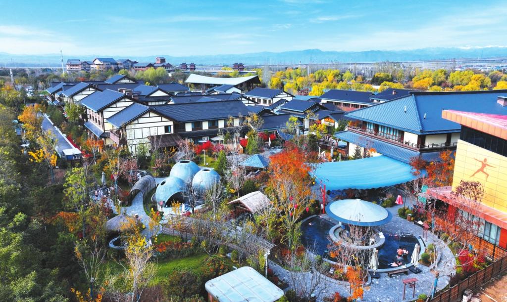 云中河溫泉旅游度假區(qū)清涼灣溫泉康養(yǎng)小鎮(zhèn)。本報記者 張存良攝